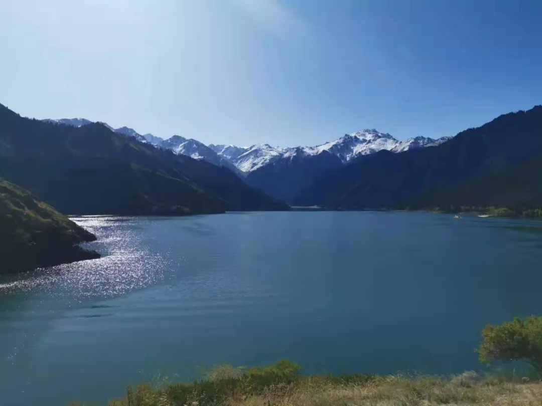 山峦之间,是那座会变色,据说水里还生活着某种巨大且凶残怪兽的美丽而神秘的湖。凭湖远眺,但见雪峰耸峙,绿坡墨林,一汪秋水,碧波琉璃。估计秋霜起兮,定会满山五色斑斓,美不胜收,如果称其为"人间仙境、神的花园",除了天冷得有点超凡脱俗以外,完全没有任何问题。