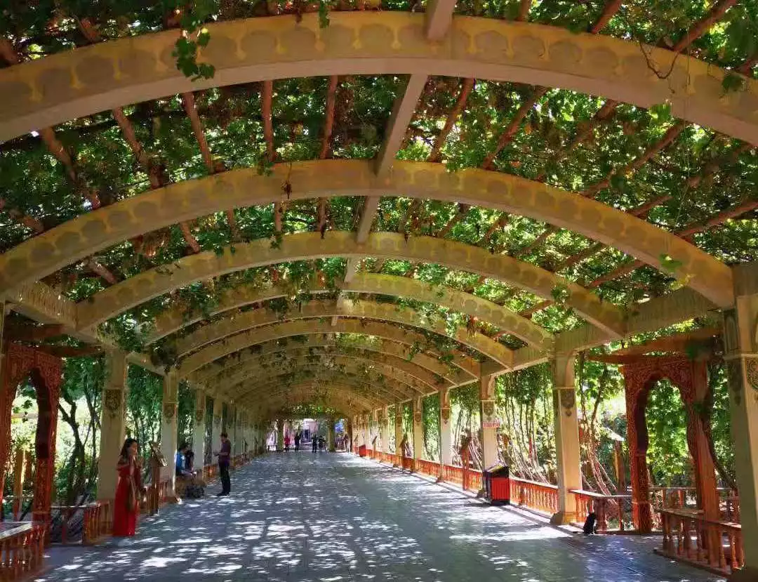 淳朴的古丽在跳罢一曲民族舞之后,端上各种当地的特产水果,数量刚刚能勾起足够的胃酸分泌又恰恰欲罢不能的阶段。于是,在微风轻拂树影婆娑的葡萄架下,嘴被花样繁多的甜蜜塞满后,各种干货被纷纷主动塞入囊中,即使最没有购买欲最淡定的同行者也在古丽多姿多彩的采购方案面前选择了臣服,选择了满载而归。